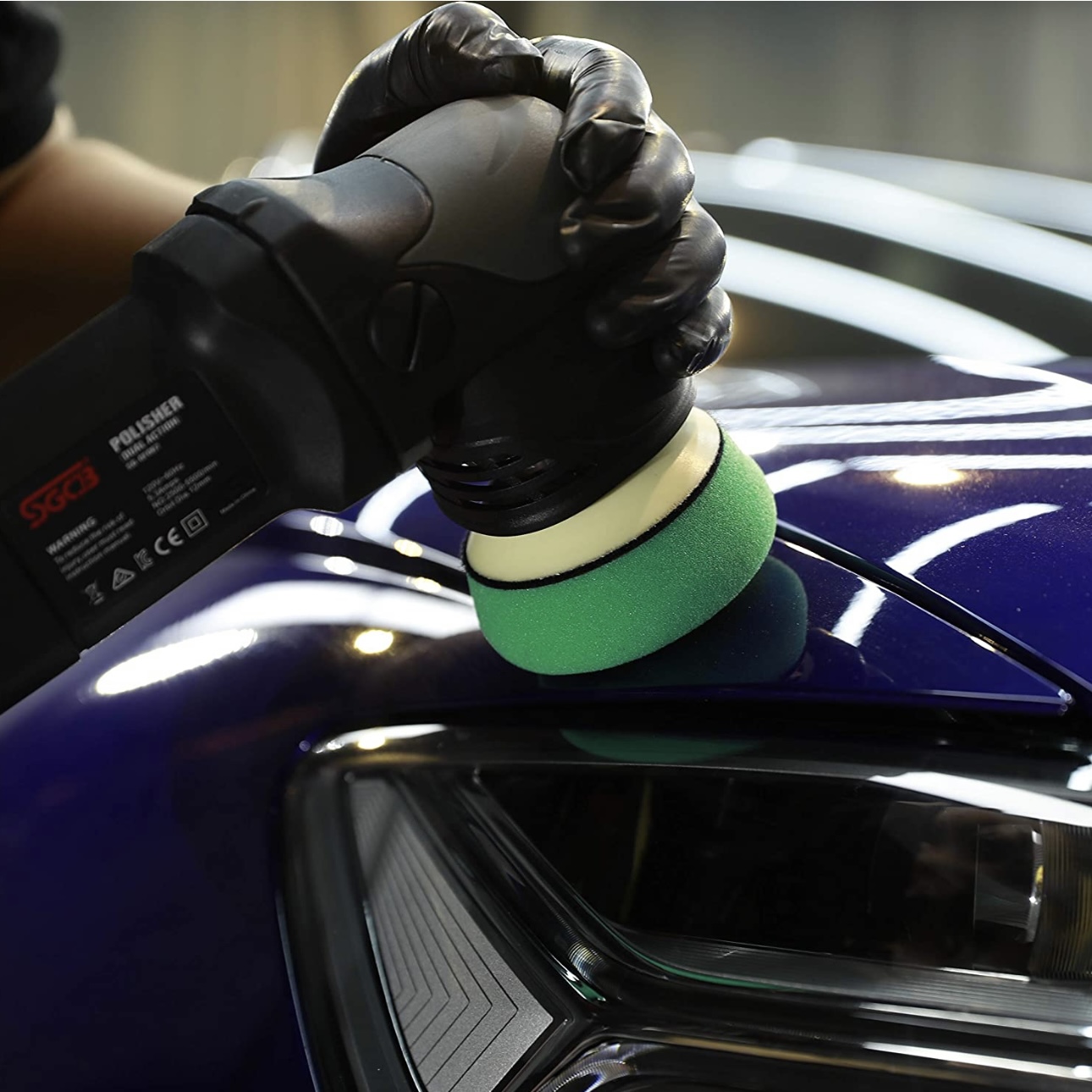 پد پولیش دوال اکشن سوپرزبر اس جی سی بی سایز7.5 مدلSGCB Foam Cutting Pad Hook & Loop Blue 3inches SGGA104