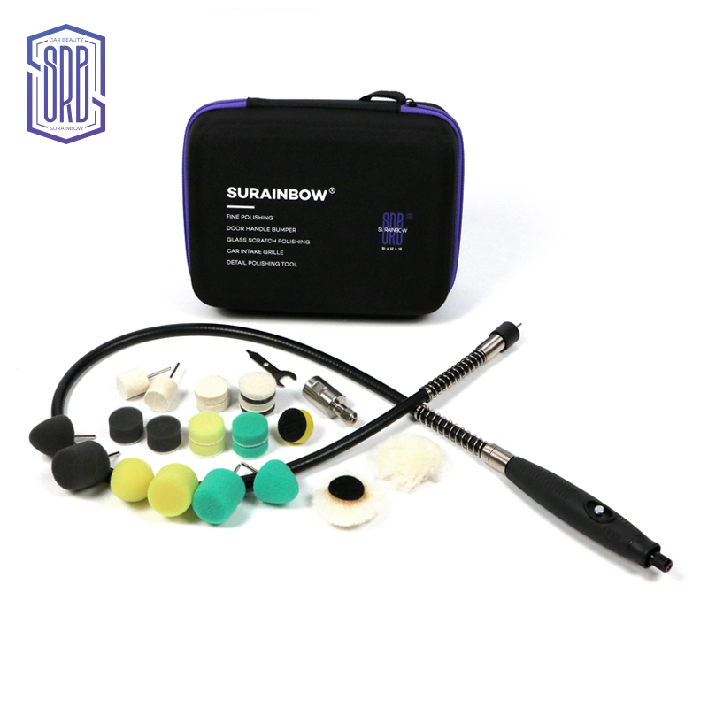 کیت کامل پولیش مینیاتوری بهترین ابزار برای انجام دیتیلینگ حرفه ای و دسترسی به نقاطی مانند زیر دستگیره درها، آرم خودرو، کنار پنجره ها، زه ها، پنل داخلی کنسول خودرو، چراغ مه شکن و سایر قسمت های غیر قابل دسترس می باشد که با دستگاه پولیش نمی توانید آن قسمت ها را پولیش کنید. مکانیزم استفاده شده در قسمت انتهای این کیت مینیاتوری کار را برای جدا سازی و اجرا بسیار ساده ساخته است.