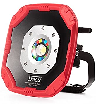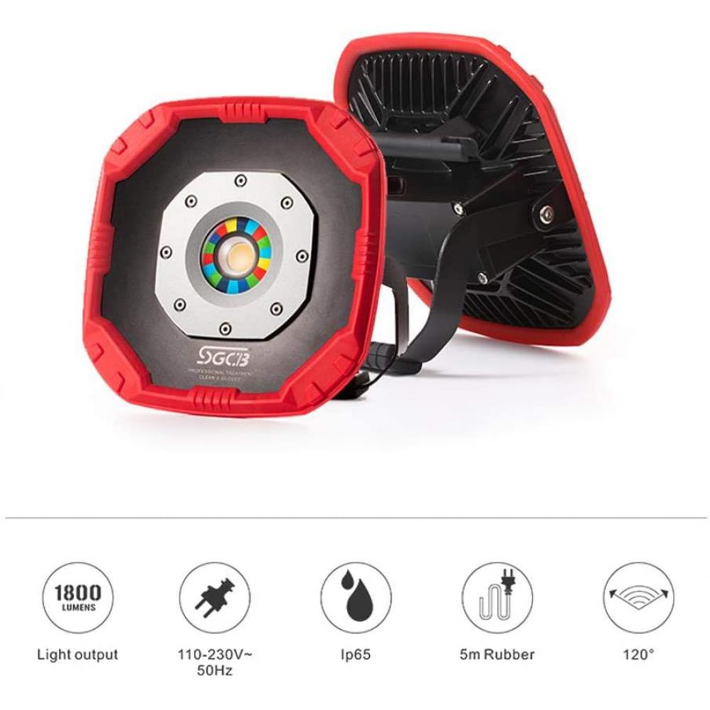 پروژکتور دیتیلینگ 1800 لومن اس جی سی بی به همراه سه پایه نگهدارنده SGCB مدل SGGF062، با جنس بسیار با کیفیت که در مقابل شکستگی بسیار مقاوم است در کارگاههای دیتیلینگ خودرو ابزاری بسیار کاربردی محسوب می شود. همچنین زنگ زدگی و خوردگی نیز به این محصول نفوذ نمی کند. از دیگر ویژگی های پروژکتور و چراغ دیتیلینگ اس جی سی بی ضدآب بودن آن می باشد. پایه این چراغ باعث می شود تا بدون نیاز به استفاده از دست به راحتی آن را بر روی میز یا قفسه قرار داد. پروژکتور دیتیلینگ 1800 لومن اس جی سی بی در محفظه ای ضد آب و مهر و موم شده در پشت لنزهای شیشه ای مقاوم در برابر ضربه قرار دارد و برای مصارف داخلی یا خارجی در هر نوع هوایی ایمن می باشد.